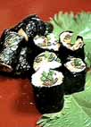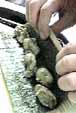 A あとは、海苔巻きを作るときと同じ。ちょっとワサビを忍ばせると、アクセントになります。